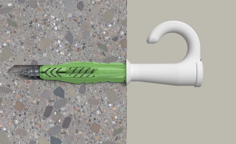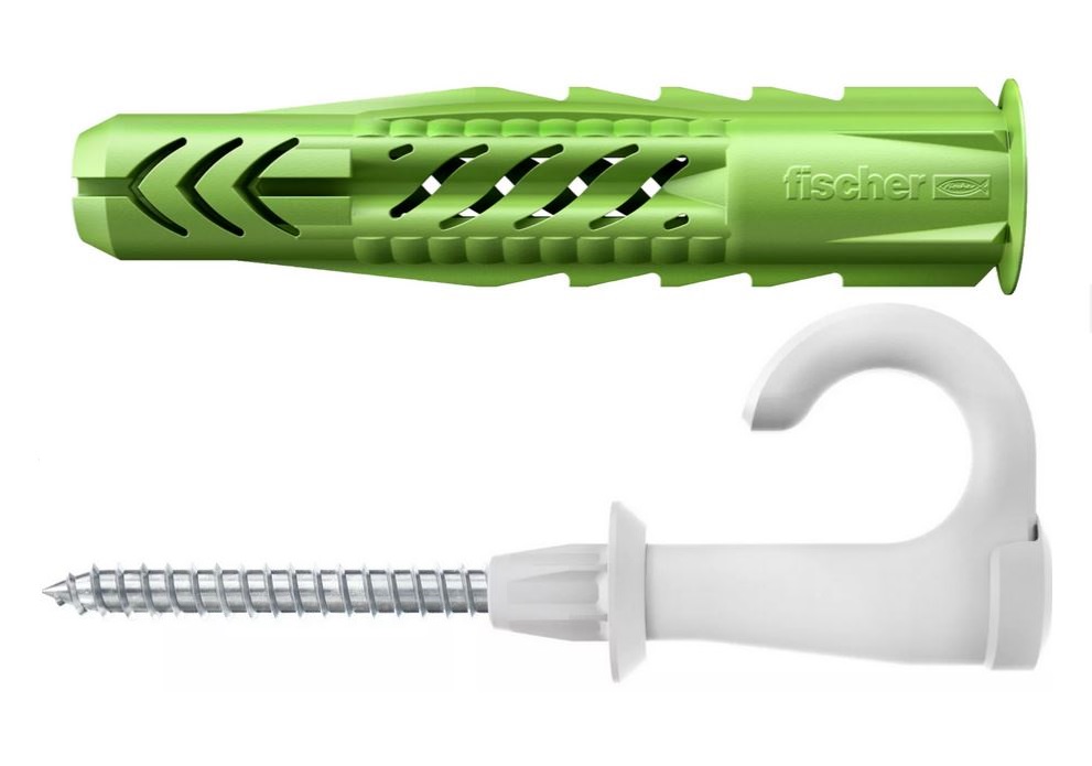 fischer Universaldübel UX Green 8 x 50 R EasyHook Round mit Rand und Edelstahlschraube A2 (2 Stück)