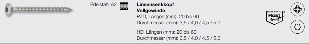 | HECO-TOPIX-plus A2 3,5 x 25, Linsenkopf, Pozi-Drive, VVG, 200 St. | 200 Stück | 5,10 € / 100 Stück | |