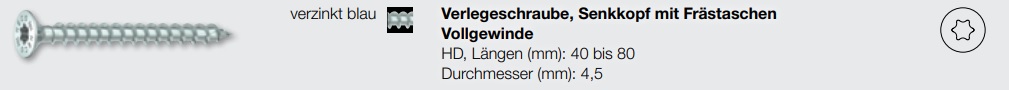 | HECO-TOPIX-plus 4,5 x 80, Verlegeschraube, HECO-Drive, VVG, A3K, 200 St. | 200 Stück | 8,17 € / 100 Stück |