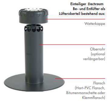 Dachraumlüfter DN 110 Hart-PVC Flansch... Flavent Dachraum Be- und Entlüfter verlängerbar Hart PVC Flansch DN 110 Flavent Dachraumlüfter für belüftete Flachdächer führen eingedrungene Feuchtigkeit sicher ab und sorgen gleichzeitig für eine optimale Luftzirkulation oberhalb der...