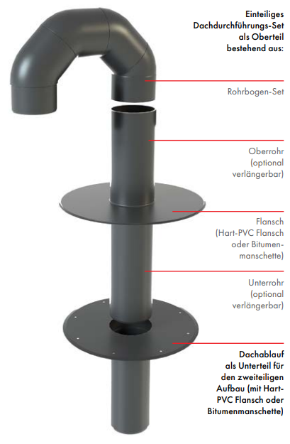 Dachablauf + Lüfteruntert. DN 125 Bitumen... Flavent senkrechter Dachablauf/ Lüfterunterteil Bitumen Manschette Flavent Produkte können modular als Dachabläufe, als Lüfterunterteile oder als Unterteil für die Dachdurchführungs-Sets eingesetzt werden. Sie sind einteilig für...