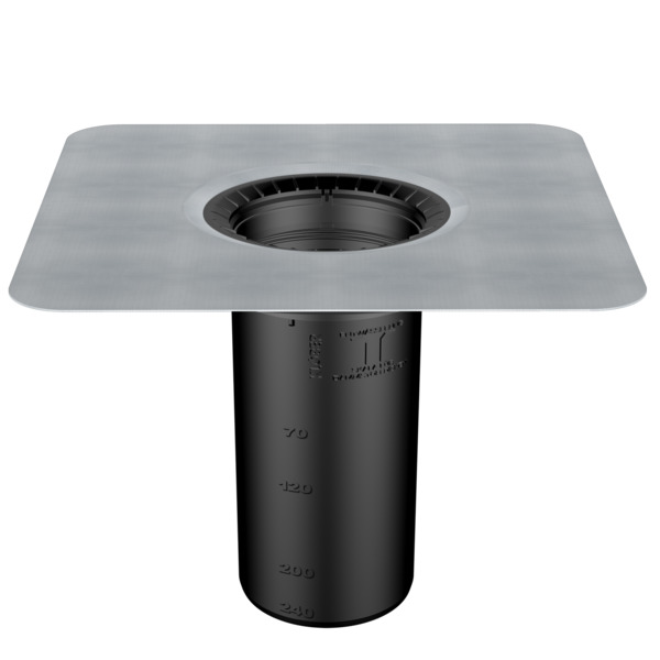 - Aufstockelement in Kombination mit Flavent Pro Dachablauf senkrecht als Unterteil als zweiteiliger Dachablauf für Warmdächer